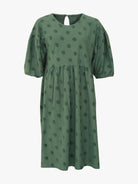 Elena-mekko hurmaa kauniilla puhvimaisilla hihoillaan ja leikkisällä Big Dot -struktuurineuloksella! Big Dot on trikoon vahvuinen neulos, jota elävöittävät pinnasta kohoavat froteemaiset täplät – ne luovat kankaaseen upean, kolmiulotteisen ilmeen. Mekossa on lisäksi käytännölliset taskut. Elena-mekko on vaivattoman tyylikäs valinta, joka sopii niin rentoihin arkipäiviin kuin juhlavampiinkin hetkiin. Polvipituinen helma, 3/4-mittaiset hihat ja laskettu olkasauma tuovat malliin rennon, mutta huolitellun ilmeen. Materiaali ei sisällä elastaania, mutta kangas joustaa silti jonkin verran. Mekko on reilua oversize -mitoitusta, joten suosittelemme valitsemaan yhtä tai kahta kokoa normaalia pienemmän koon, mikäli haluat istuvamman mekon.
