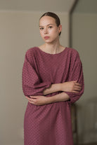 Tyylikäs ja leikkisä Natalia -mekko ihastuttaa rennolla mukavuudellaan ja puhvimaisilla hihoillaan! Mekko on valmistettu Dot-struktuurineuloksesta. Dot on trikoon paksuinen neulos, jossa on froteemaisia pieniä pilkkuja, jotka kohoavat neuloksen pinnasta tehden siitä ihanan eläväisen. Asusteita ja kenkiä vaihtamalla Natalia-mekko sopii moneen tilanteeseen: toimistolle, vapaa-aikaan ja juhlaan. Pue sukkahousujen, saappaiden ja huulipunan kanssa illallistreffeille tai leggingsien ja neuletakin kanssa rennompaan tilaisuuteen. Malliltaan mekko on suora ja väljä, helma on polvimittainen. Mekon hihat ovat hieman vajaamittaiset, laskettu olkasauma. Huomioithan, että materiaali ei sisällä elastaania, joten kangas ei juurikaan jousta.