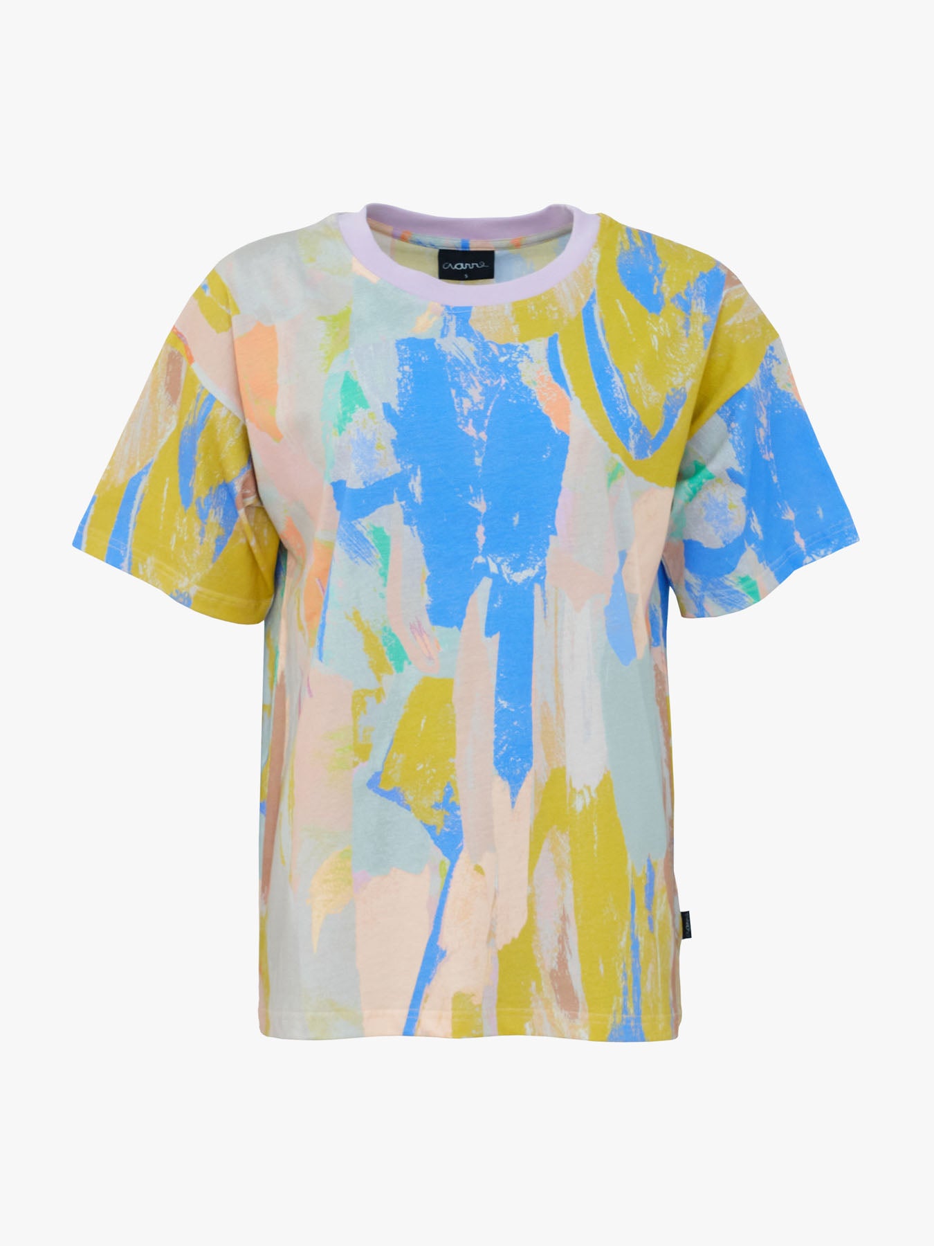 Naisten lyhythihainen paita kauniilla Wisdom -kuosilla. Monikäyttöinen paita on helppo yhdistää niin farkkujen, hameiden kuin suorienkin housujen kanssa, ja värikäs kuosi piristää asua kuin asua! Luo virallisempi asukokonaisuus suorien housujen ja nilkkureiden kanssa tai yhdistä Tara-paita rentoihin farkkuihin ja tennareihin vapaa-aikaan. Luomupuuvillatrikoo on mukava käytössä, ja helppohoitoisuuden ansiosta Tara-paita sopii hyvin mukaan myös reissuun. Laatikkomainen, väljä malli, jossa pyöreä pääntie ja lyhyet hihat.