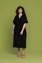 Salome-mekon väljät puolipituiset hihat ovat rennon mukavat ja leikkaus vyötäröllä tuo vaatteeseen istuvuutta. Pohjemittainen helma on kätevä eri vuodenajoissa – mekko toimii hyvin myös viileämmällä ilmalla sukkahousujen kanssa. Huomioithan, että materiaali ei sisällä elastaania, joten kangas ei juurikaan jousta.