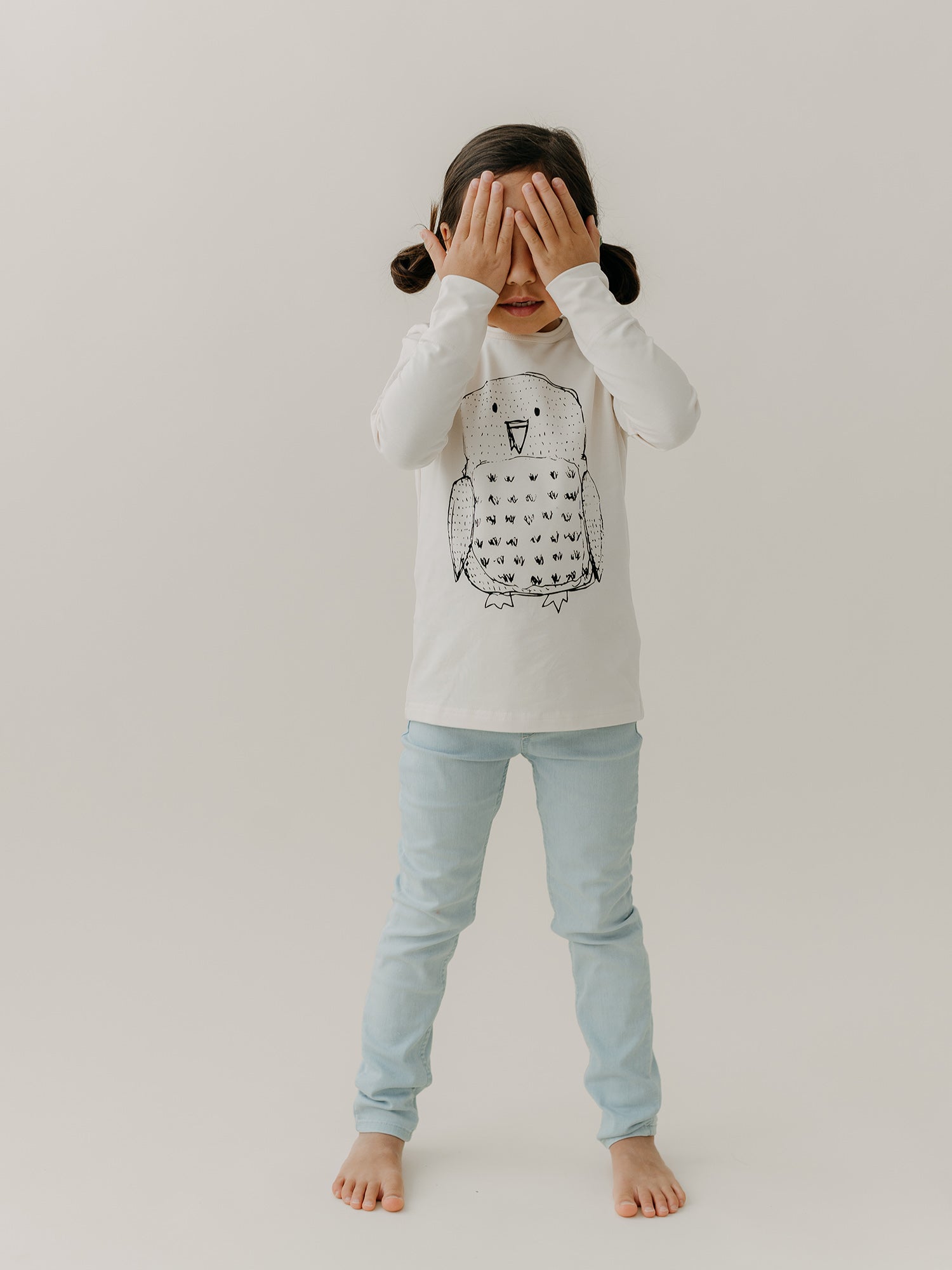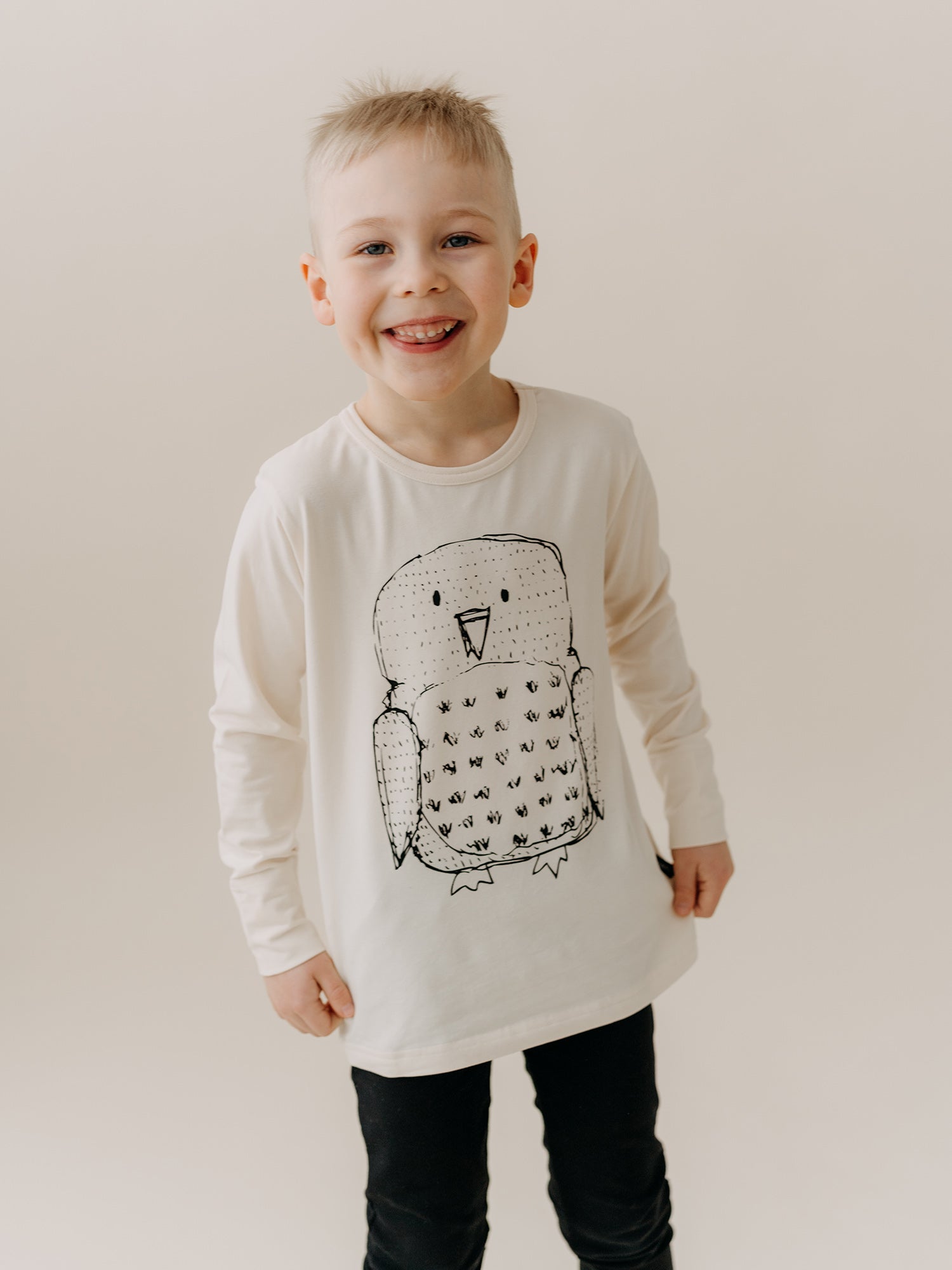 Pöllö Pitkähihainen Paita, Luonnonvalkoinen