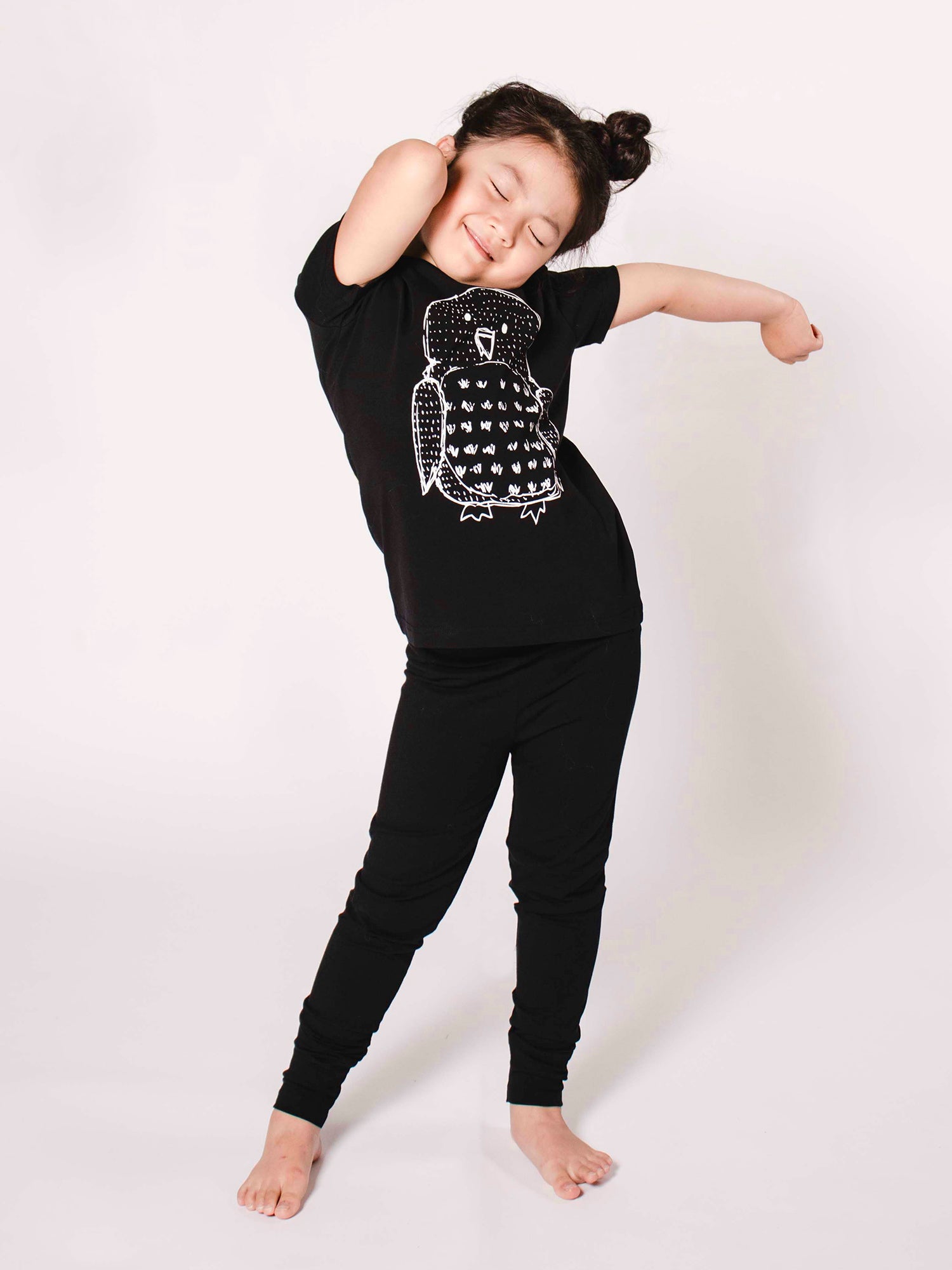 Lasten luomupuuvillainen t-paita valkoisella Pöllö -printillä, jota lapsetkin rakastavat! Musta paita on helppo yhdistellä muihin printteihin ja väreihin. Materiaali on pehmeää luomupuuvillaa, joka sopii herkällekin iholle. Unisex väri ja painatus, sekä korkea laatu mahdollistavat paidan kierrättämisen myös sisaruksille ja ystäville. Miehille saatavilla samanlainen paita!