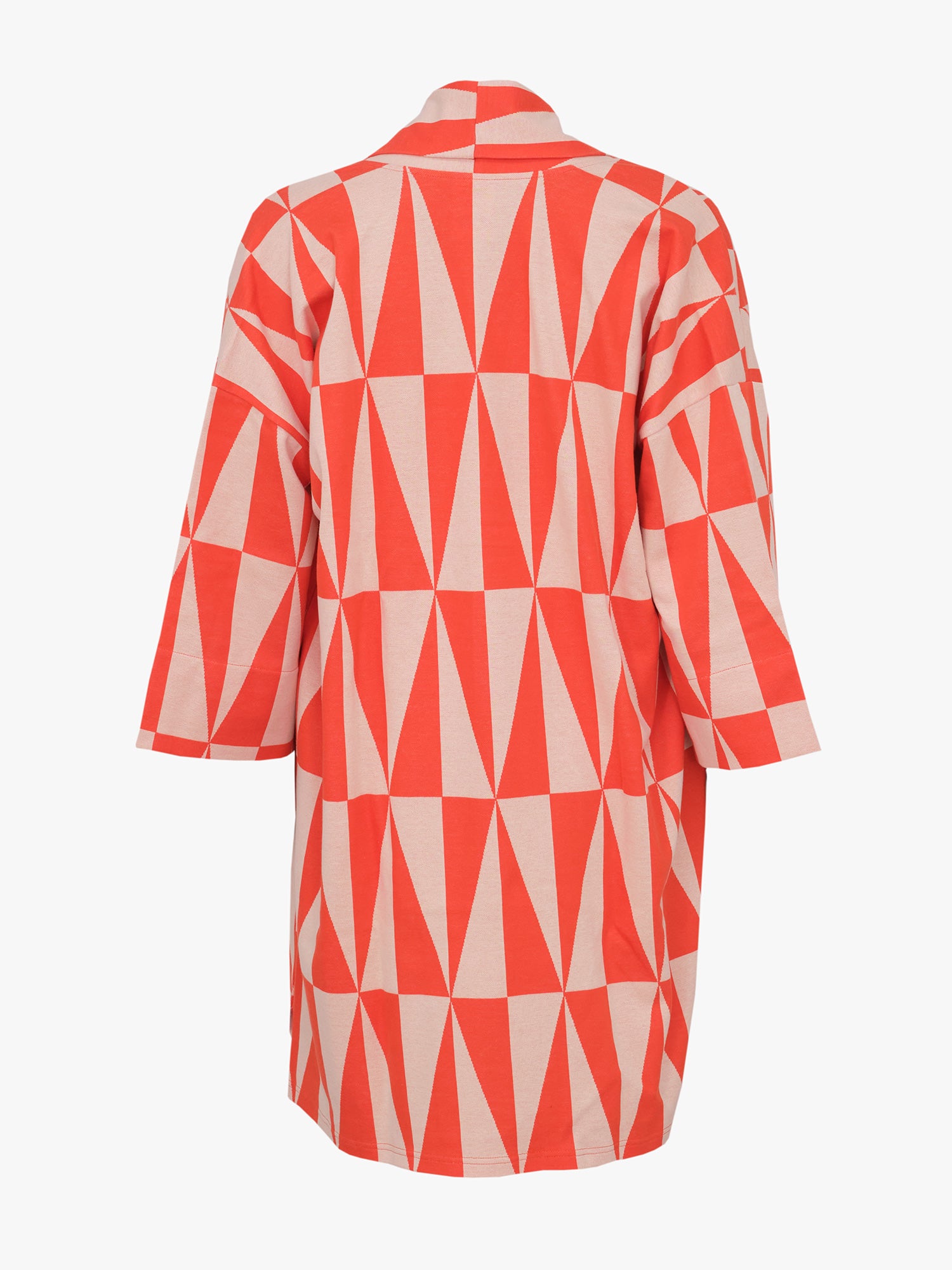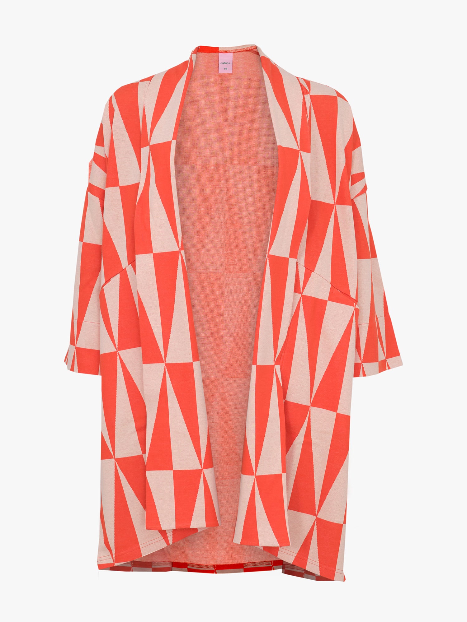 Rento Kayla takki graafisella Tiles -kuosilla. Polvipituisessa takissa on huivimainen kaulus sekä edessä viistot taskut. Hihat ovat hieman vajaamittaiset. Materiaali on hieman trikoota vahvempaa 100 % luomupuuvillaista jakardia. Materiaali ei sisällä elastaania, mutta neulos joustaa silti jonkin verran. Kayla takki on jo itsessään todellinen katseenvangitsija, mutta lisäämällä takin pariksi Avery-housut, saat kokonaisen Tiles -kuosillisen asun.