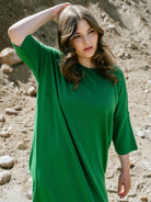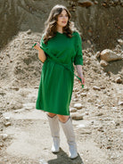 Mekossa on 3/4 hihat, laskettu olkasauma ja V-pääntie. Helma on polvimittainen. Helmassa sivuilla pienet halkiot, vyötäröllä irrotettava vyö. Ajaton ja tyylikäs mekko on valmistettu lämpimästä, mutta hyvin hengittävästä merinovillasta. Merinovilla on oiva materiaali syys- ja kevätkeleille, mutta toimii hyvin myös talven pakkasilla paksumpien sukkahousujen tai legginsien kanssa yhdistettynä.
