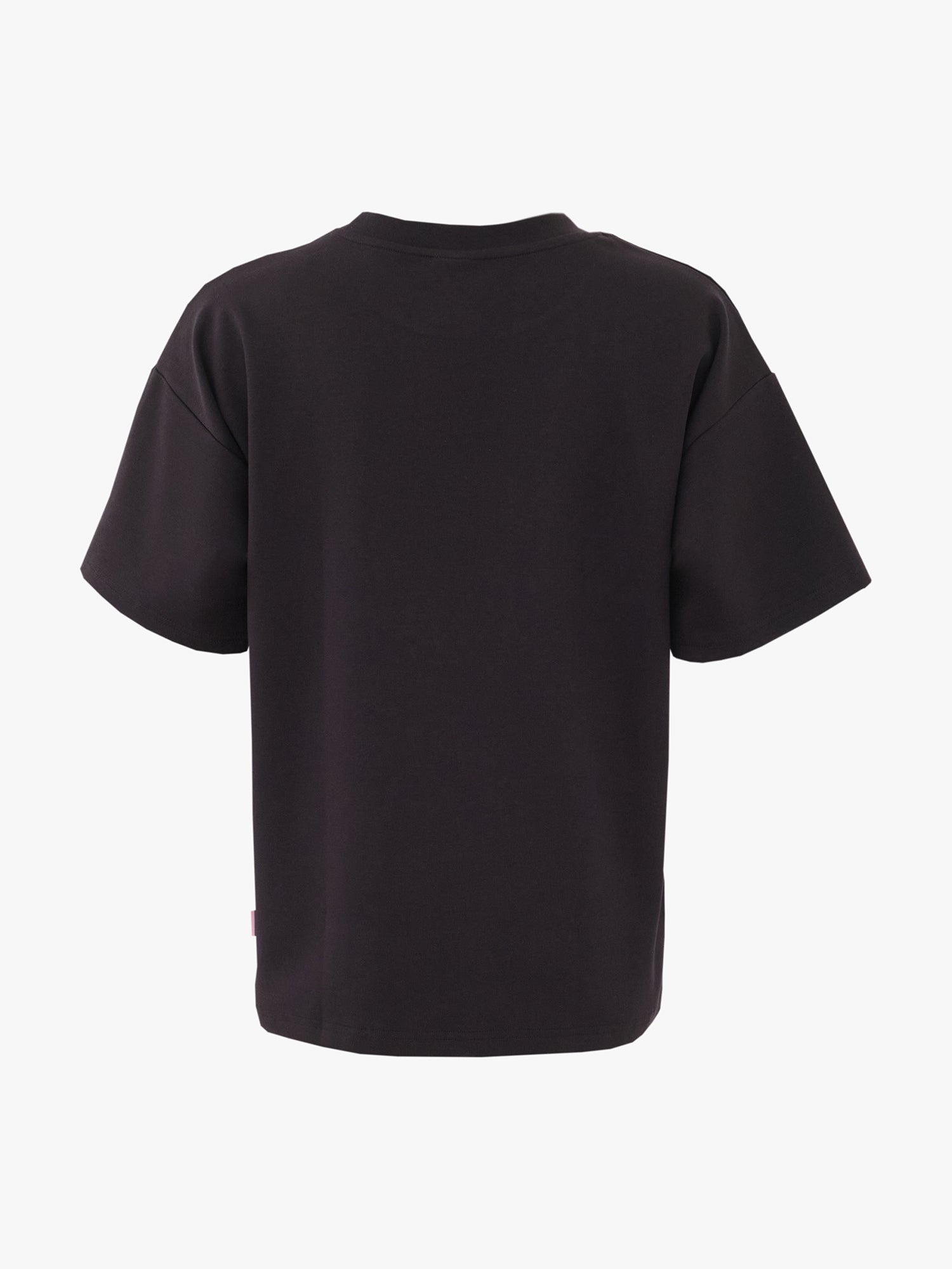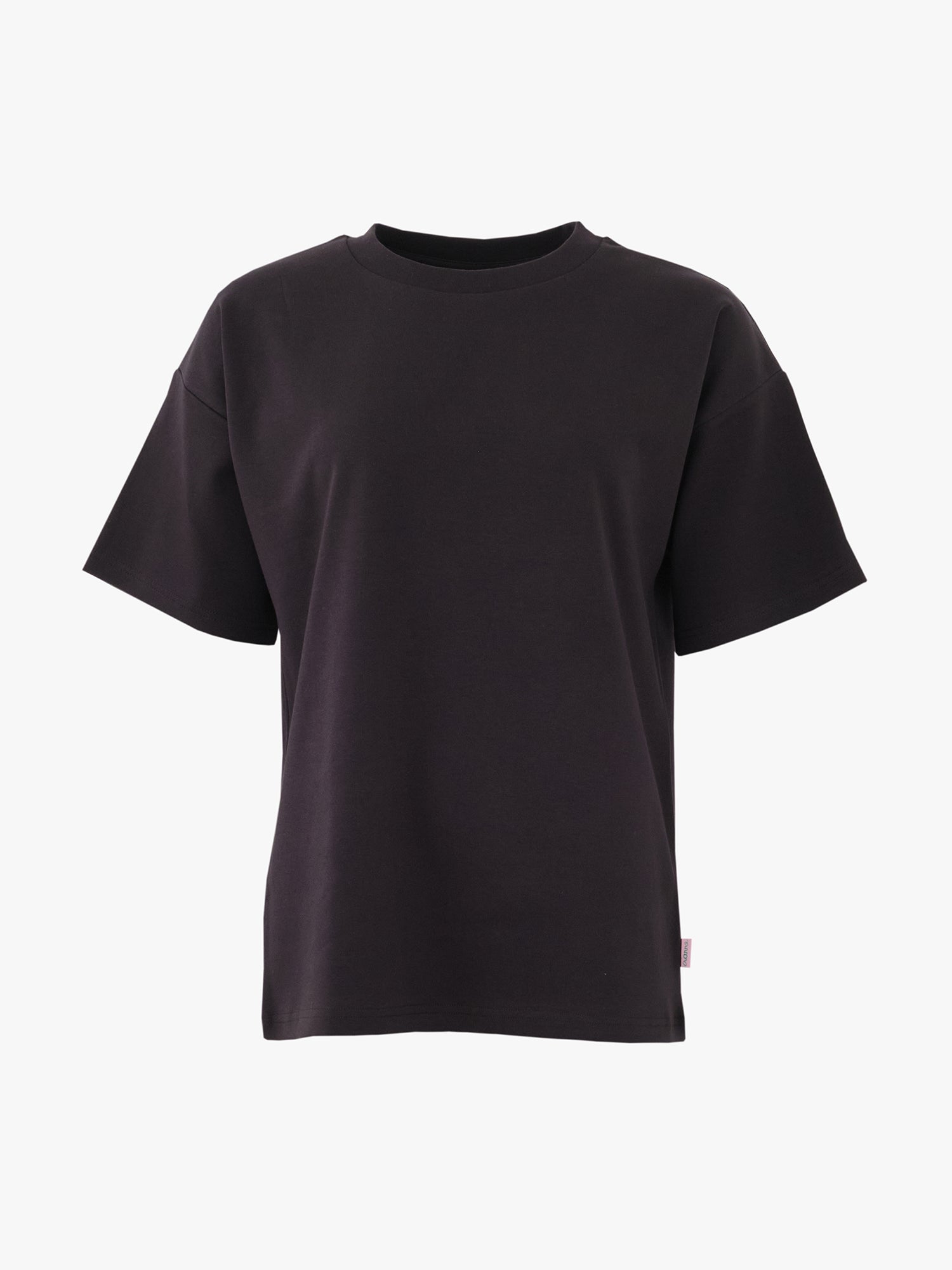 Queen t-paita on monikäyttöinen ja helppo yhdistää niin farkkujen, hameiden kuin suorienkin housujen kanssa. Paidan materiaali on trikoota paksumpaa Ponto Roma -neulosta, jonka ansiosta paita on ryhdikäs eikä materiaalista kuulla niin helposti läpi. Materiaali ei sisällä elastaania, mutta neulos joustaa silti jonkin verran. Laatikkomainen, väljä malli, jossa pyöreä pääntie ja lyhyet hihat.