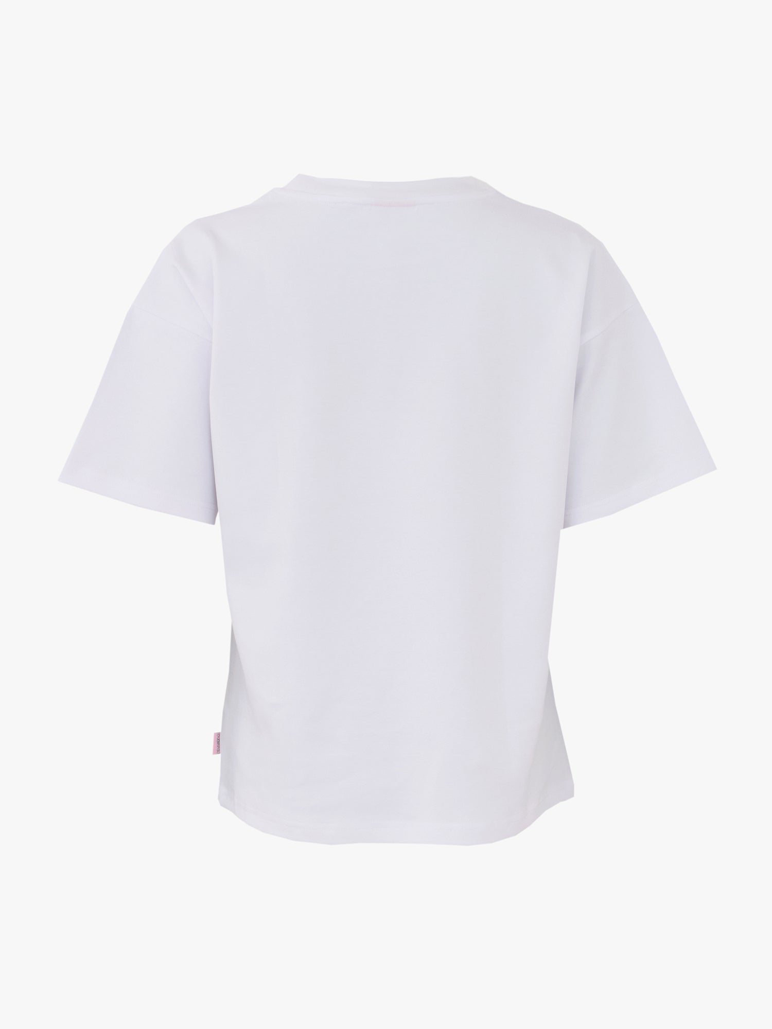 Queen t-paita on monikäyttöinen ja helppo yhdistää niin farkkujen, hameiden kuin suorienkin housujen kanssa. Paidan materiaali on trikoota paksumpaa Ponto Roma -neulosta, jonka ansiosta paita on ryhdikäs eikä materiaalista kuulla niin helposti läpi. Materiaali ei sisällä elastaania, mutta neulos joustaa silti jonkin verran. Laatikkomainen, väljä malli, jossa pyöreä pääntie ja lyhyet hihat.