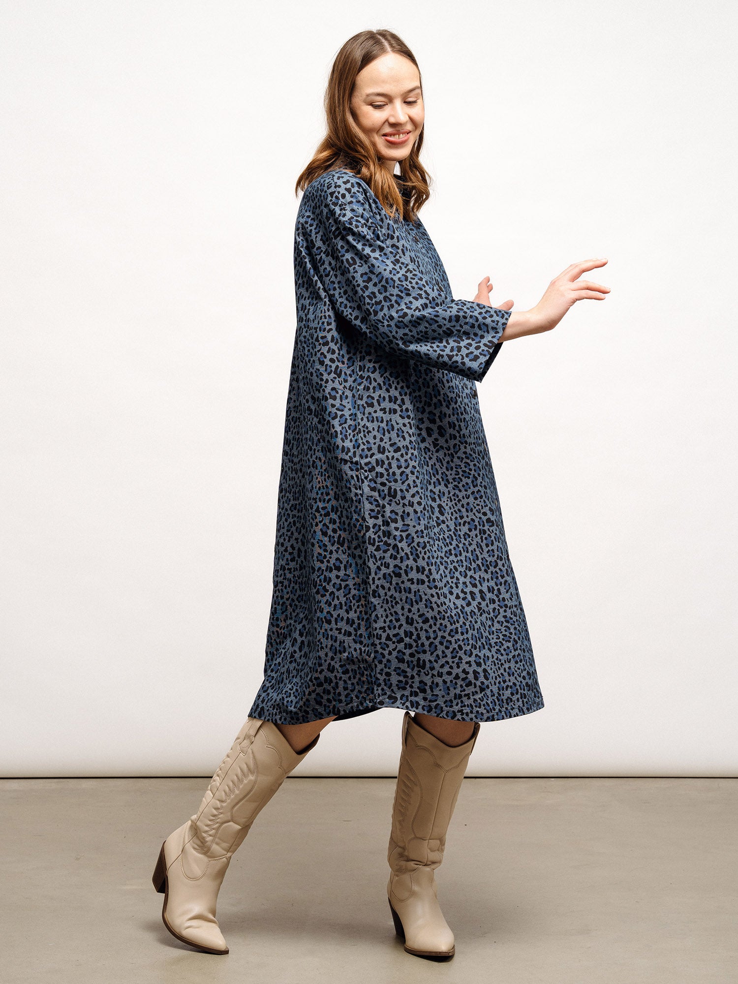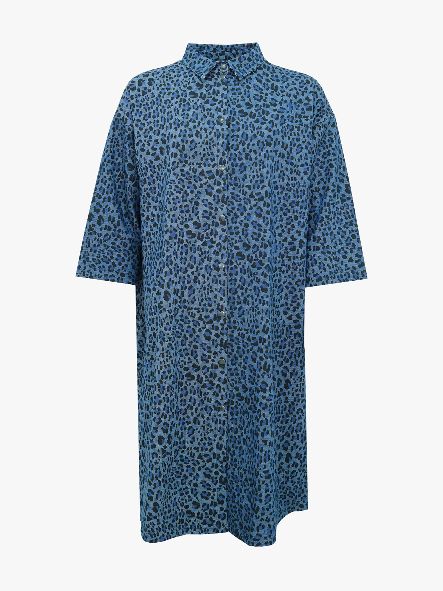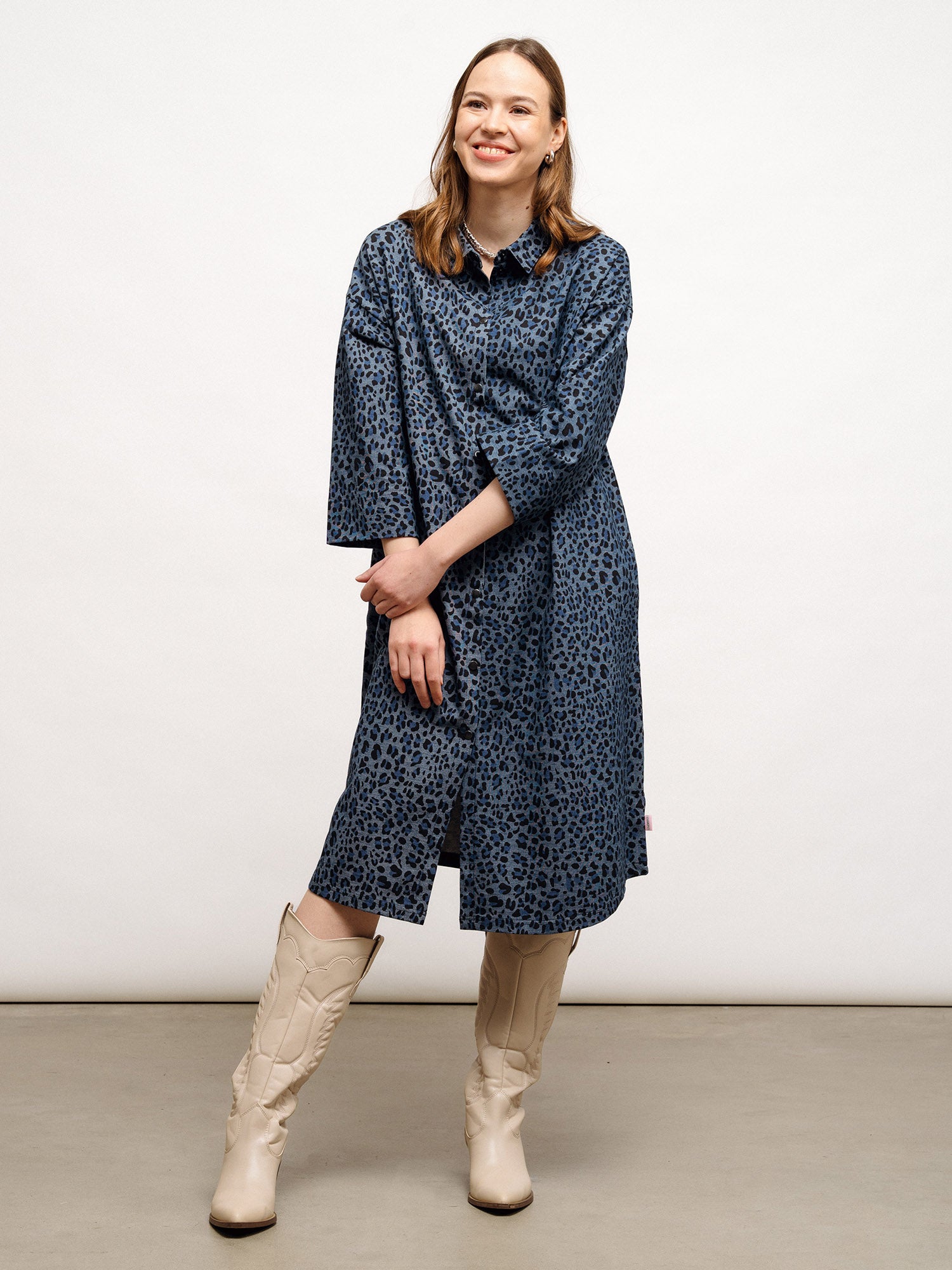 Tyylikäs, leopardikuosinen paitamekko on samalla sekä rento että asiallinen, ja se on helppo stailata niin arkeen kuin virallisempiinkin tilaisuuksiin. Yhdistä rennosti sporttisiin tennareihin ja collegepaitaan, tai huulipunan, neuletakin ja lempiasusteidesi kanssa vaikka lounastreffeille. Voit käyttää mekkoa myös takkina. Lyhythihaisessa mekossa on siro kaulus, sekä edessä mustat, metalliset painonapit (nikkelivapaat). Helma on polvimittainen. Materiaali on jämäkkää mutta joustavaa, denim-tyylistä trikooneulosta.