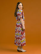 Mekossa on väljät, puolipituiset hihat. Leikkaus vyötäröllä tuo vaatteeseen istuvuutta. Midi-mittainen helma on kätevä eri vuodenajoissa – mekko toimii hyvin myös viileämmällä ilmalla sukkahousujen kanssa.