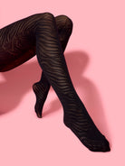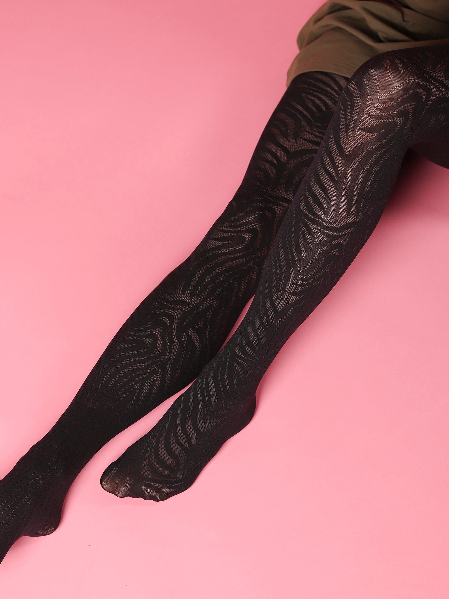 Women's 60 denier black tights with a tiger stripe pattern. These 3D tights are for those who are tired of uncomfortable tights! 60den tiger stripe pantyhose are a spectacular choice for everyday life and parties. Package includes one pair.