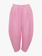 Relaxed, balloon shaped pull-on pants are comfortable to wear, but they also fit for a more formal outfit. These pants also have pockets. The Ponto Roma interlock material is heavier than single jersey, and it makes the pants more dressier. Shape pleats on the knees and legs. Slightly cropped leg length, elastic band at waist. Combine with boots, a plush sweater and a t-shirt for a casual outfit, or dress it up with a collared shirt and lipstick for a comfortable outfit for a more formal occasion.