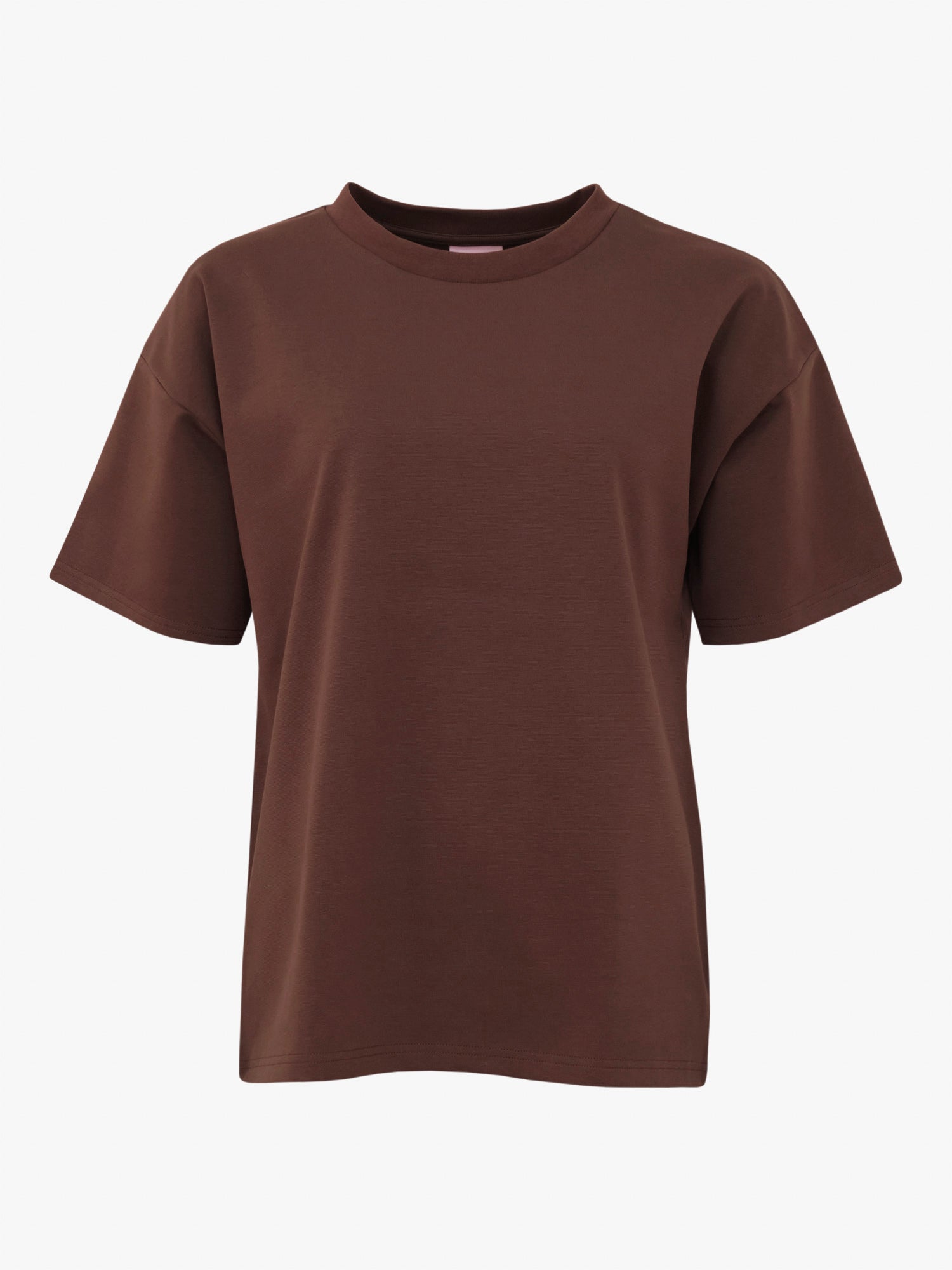 Queenie t-shirt is a wardrobe staple that will take your everyday look to the next level. Easy to style – it works effortlessly with jeans, skirts, and tailored trousers. The clean, boxy silhouette and short sleeves create a minimalist look that works on its own or as part of a layered outfit. The opaque Ponto Roma material gives the shirt structure and coverage, and also clean, finished look even though the design is casually loose.