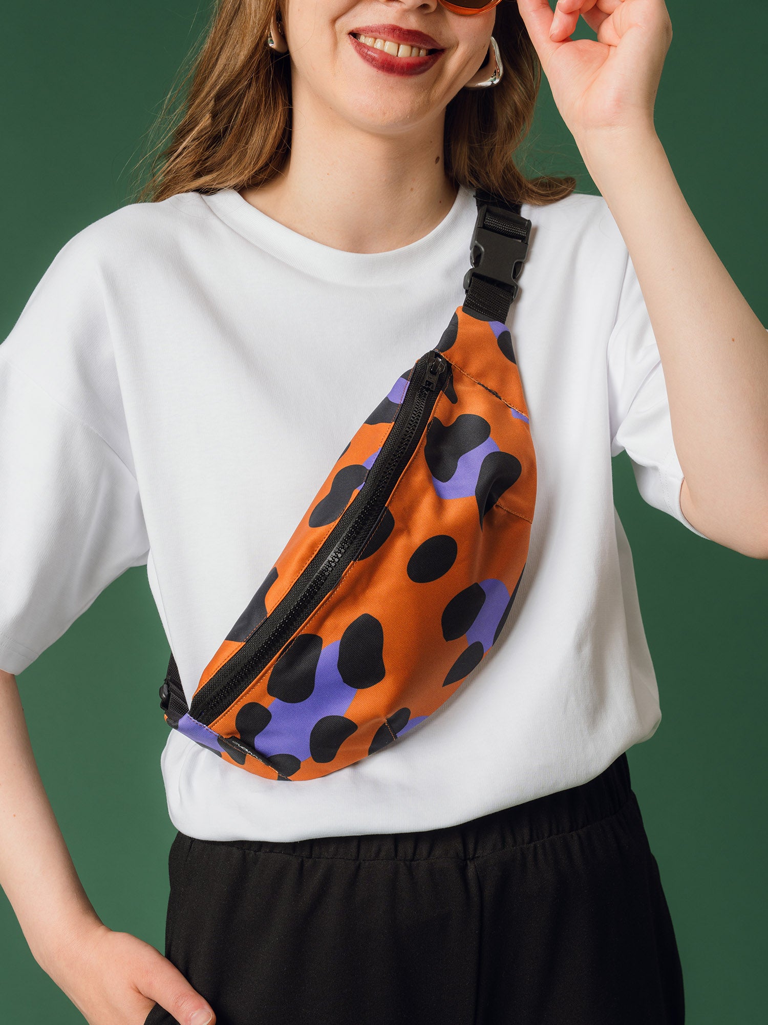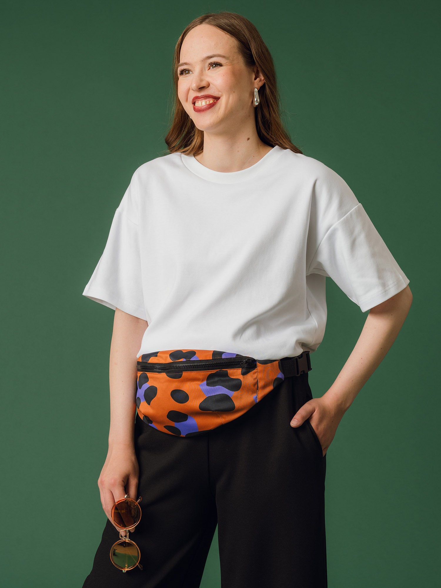 Lightweight and handy bum bag is easy to carry with you from morning to evening. The leo-print bag stands out from the mass: the animal pattern adds edge to your outfit and makes the bag a real eye-catcher. The bag is made from Aarre leftover fabric from the I Love Me fair, in collaboration with Globe Hope. The adjustable strap and handy plastic buckle ensure ease of use and a comfortable fit – wear it around your waist or across your chest in a chestbag style, and move freely! The bag features a plastic zipper closure and a small, open inner pocket. With this bum bag, you can easily keep your essentials with you – whether you're on a business trip, traveling, or on a city walk.