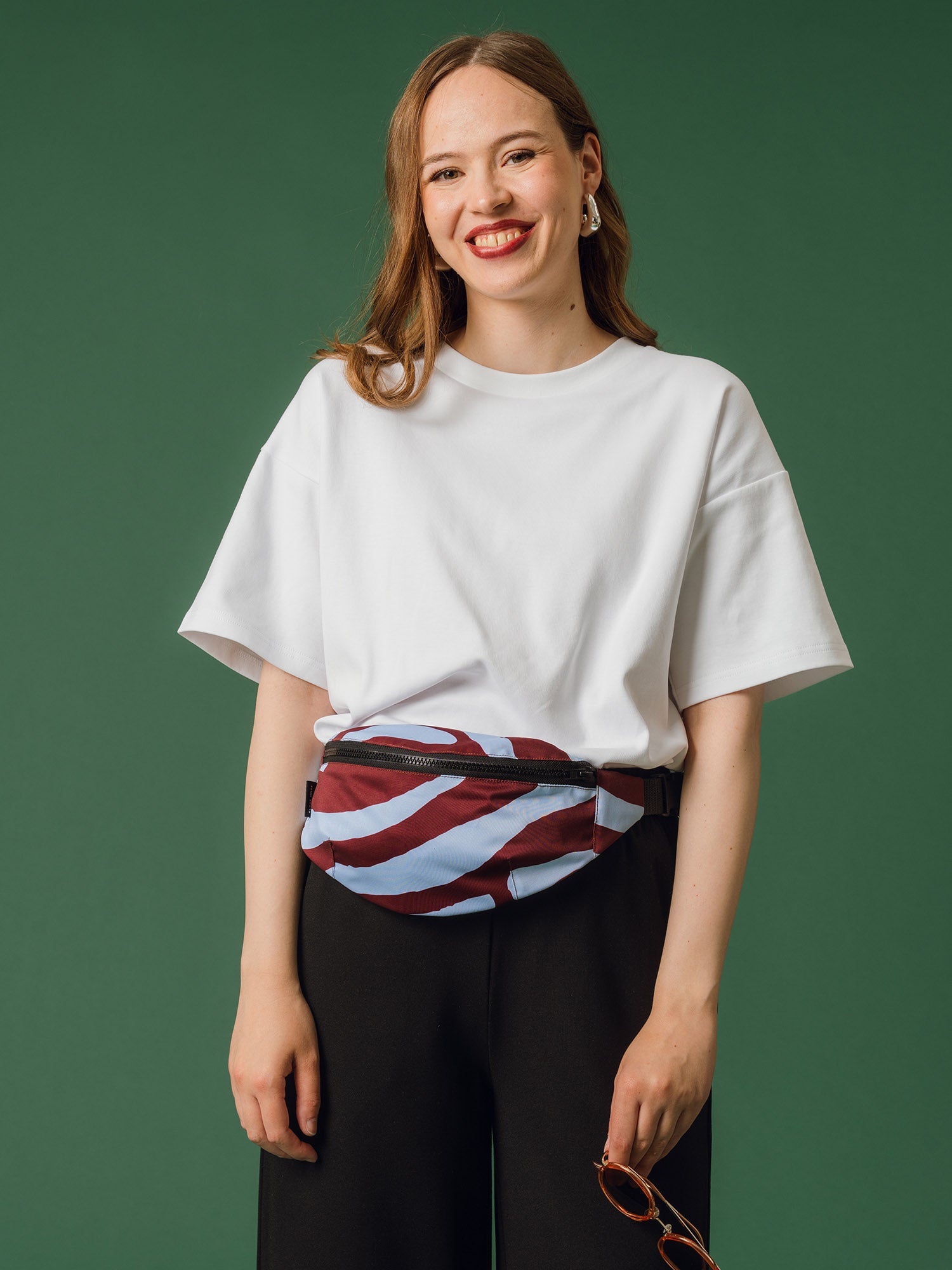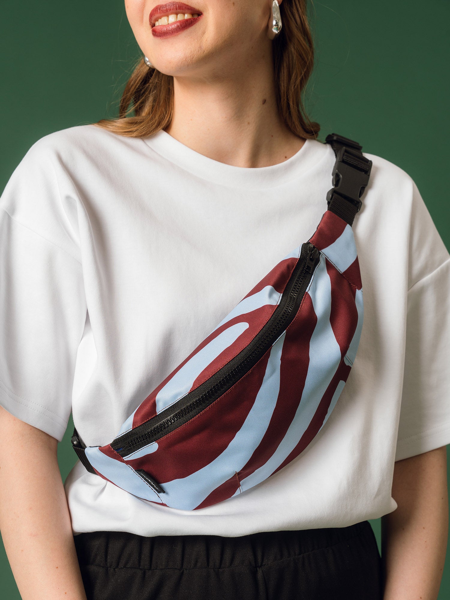 Lightweight and handy bum bag is easy to carry with you from morning to evening. The tiger-print bag stands out from the mass: the animal pattern adds edge to your outfit and makes the bag a real eye-catcher. The bag is made from Aarre left over fabric from the I Love Me fair, in collaboration with Globe Hope. The adjustable strap and handy plastic buckle ensure ease of use and a comfortable fit – wear it around your waist or across your chest in a chestbag style, and move freely! The bag features a plastic zipper closure and a small, open inner pocket. With this bum bag, you can easily keep your essentials with you – whether you're on a business trip, traveling, or on a city walk.