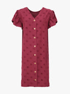 The relaxed and versatile Aida dress is made of beautiful structure fabric! Big Dot is jersey like fabric with terry spots that rise from the surface of the fabric, making it feel and look lively. By changing the accessories, the dress can be worn both for everyday life and for parties. You can wear the dress buttons to the front or back depending how you like it! Please note that the fabric doesn’t include elastane so it doesn’t stretch. The design of the dress is straight and quite loose, and it suits many different body types. The dress has short frill sleeves and a V-neckline. The hem is knee-length. In cooler weather, combine for example with a warm Alma cardigan and thicker 3D Pantyhose tights.