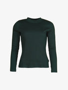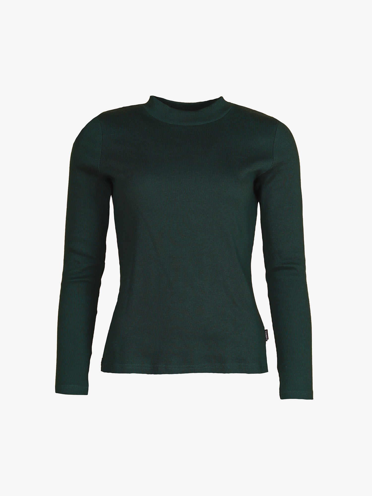 Rudi rib shirt in a subtle, dark green shade. A high-quality shirt that is easy to combine with many different outfits and situations. The classic shirt goes well with trousers, jeans and skirts, and is particularly comfortable to wear thanks to its super elastic rib material. The form-fitting shirt also goes well under a cardigan. The shirt has full-length sleeves and a low turtleneck. The hem of the shirt reaches the hips. Rib knit is super stretchy material, and also easy to care of.
