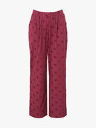Jill pants have straight, full-length legs, and pleats at the waist in front. The pants also have handy side pockets! A wide elastic band at the waist, which is sewn into the waist seam in such a way that it does not twist or turn around. Pants are made from Big Dot structural fabric. Big Dot is jersey like fabric with terry spots that rise from the surface of the fabric, making it feel and look lively. The pants are comfortable to wear, and they also suit for more formal outfit. Combine with sneakers and a t-shirt or a plush sweater for a casual outfit, or wear it with a blouse and lipstick for a comfortable outfit for a more formal occasion. Please note that the fabric doesn’t include elastane, but it still has some stretch.