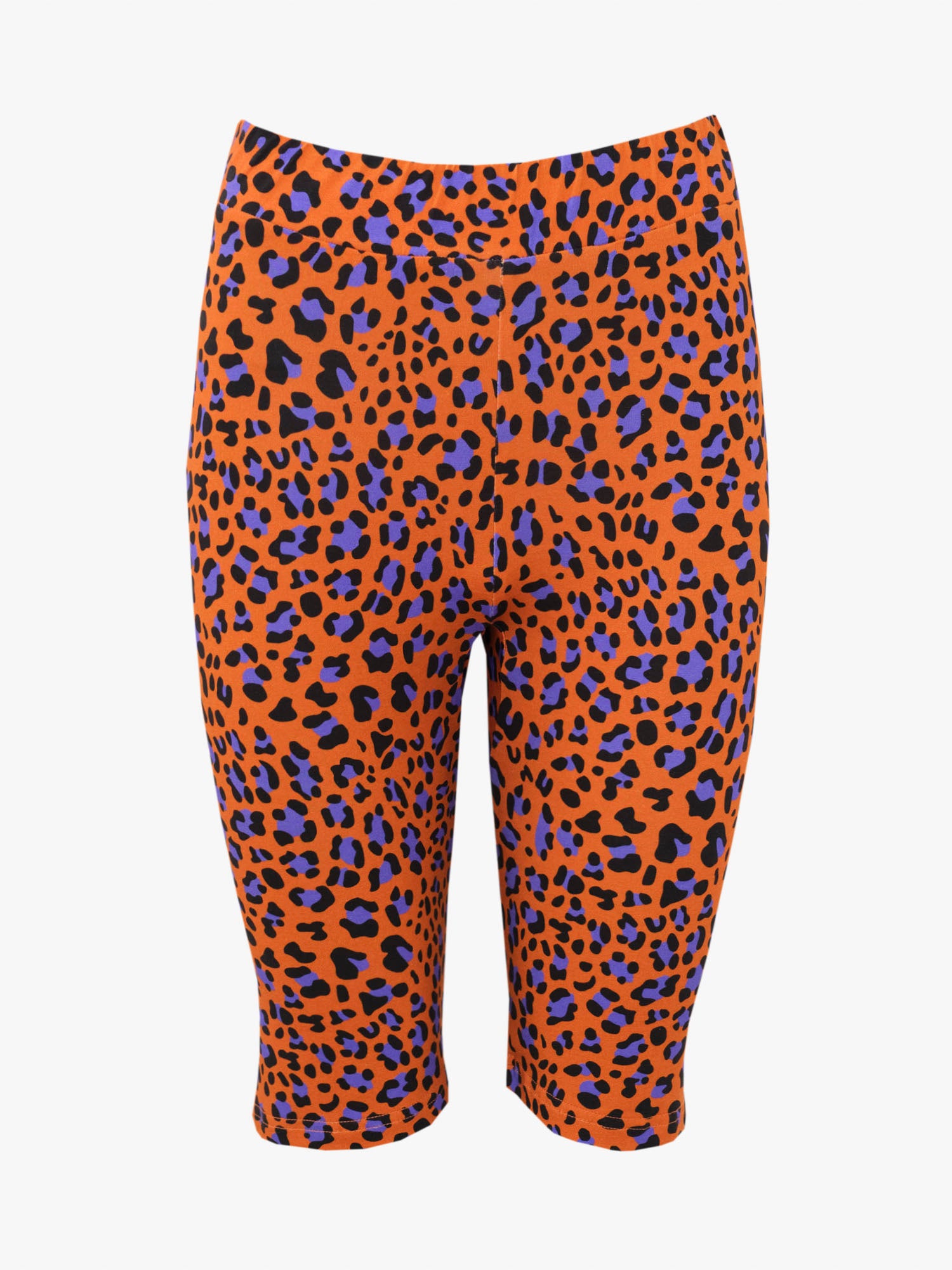 Classic leopard pattern in new color! Lovely leopard print biker shorts are perfect for many summer outfits! Combine with a t-shirt and blazer for a city or wear with a casual hoodie and sneakers for a sporty outfit. The shorts fit tightly and look good for example with oversize shirt! The legs are slightly above the knee. High waist with wide elastic band (50mm).