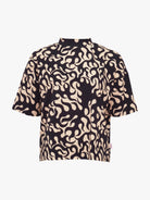 The Kael T-shirt combines comfort and striking style. This black women's t-shirt gets a personalized look from the stunning, graphic Flame print. The low turtle neck gives the shirt a polished look, making it versatile and an easy choice for everyday wear, leisure, and smart casual outfits. Relaxed, boxy fit. The material is soft and breathable organic cotton, which feels pleasant to wear all day long. The perfect choice for those who love black – but want a touch of flair in their classic style!