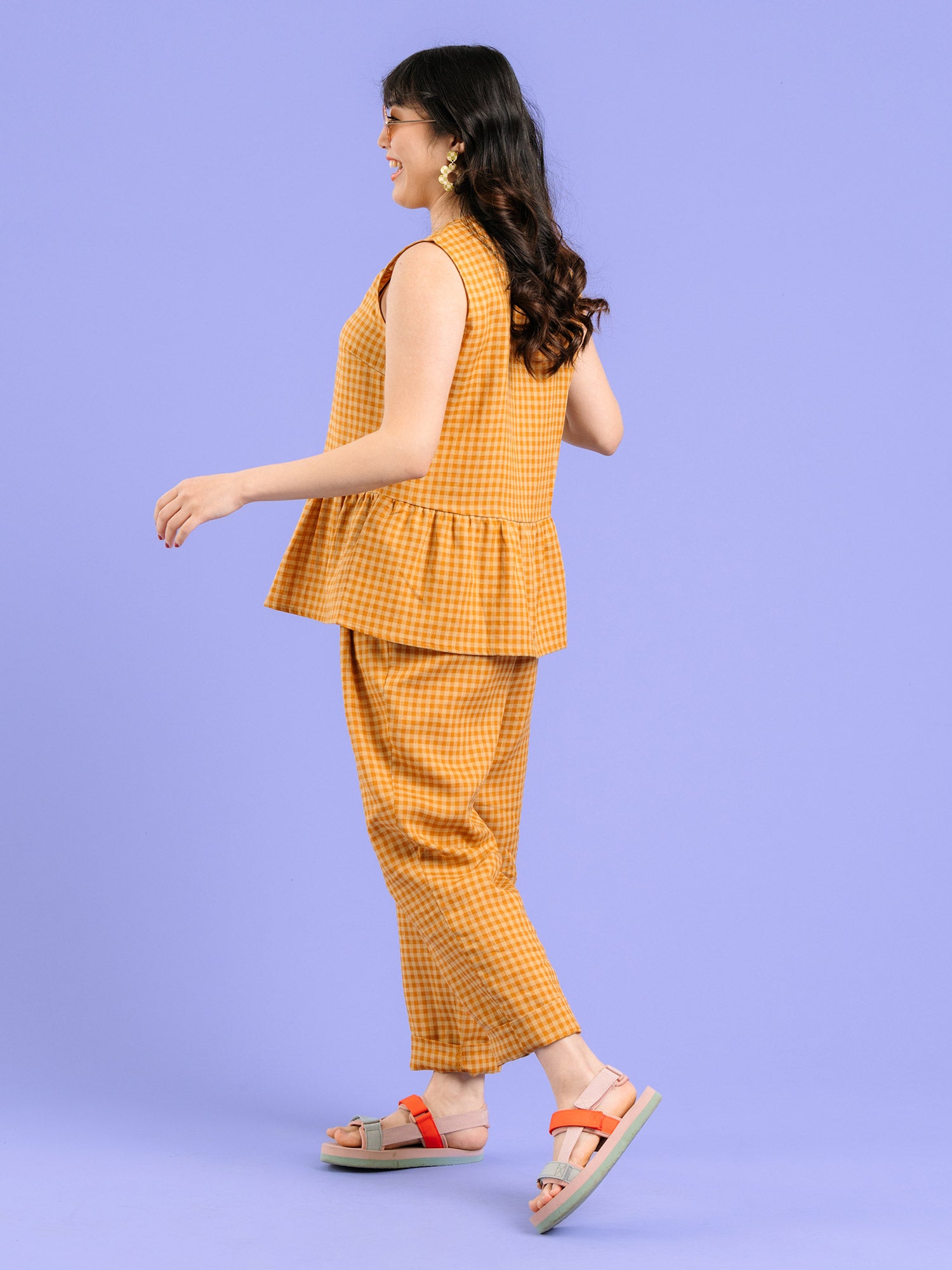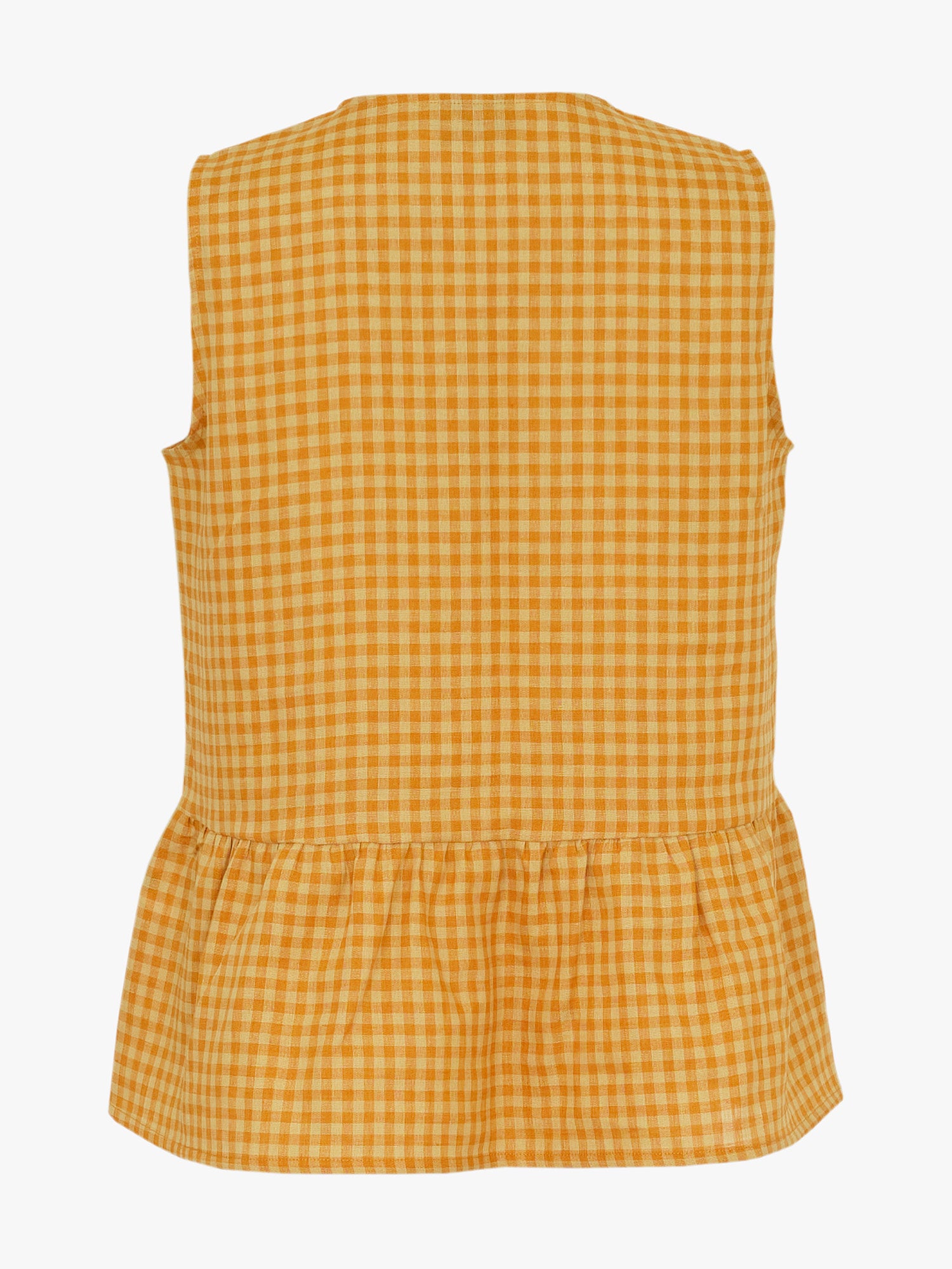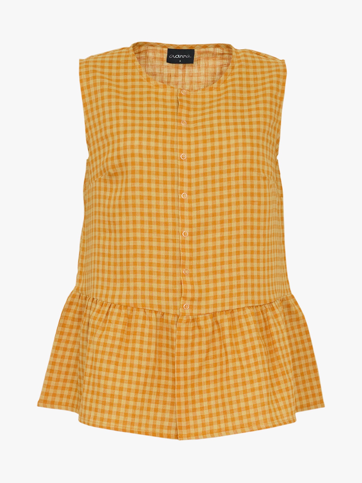 Toinen Aarteen toppimalleista on jo pidemmältä ajalta tuttu puuvillainen Celene-toppi, joka tunnetaan hyvin sen kääntömahdollisuudesta. Topin voi siis pukea laittamalla napit joko eteen tai selkäpuolelle. Tämän avulla yksinkertaisen mallin ja idean omaava toppi onkin saanut useamman käyttötarkoituksen ja erottuu muista tarjolla olevista topeista. Celene-toppeja löytyy kolmessa eri kuosissa tai värissä ja kahdessa eri neuloksessa.