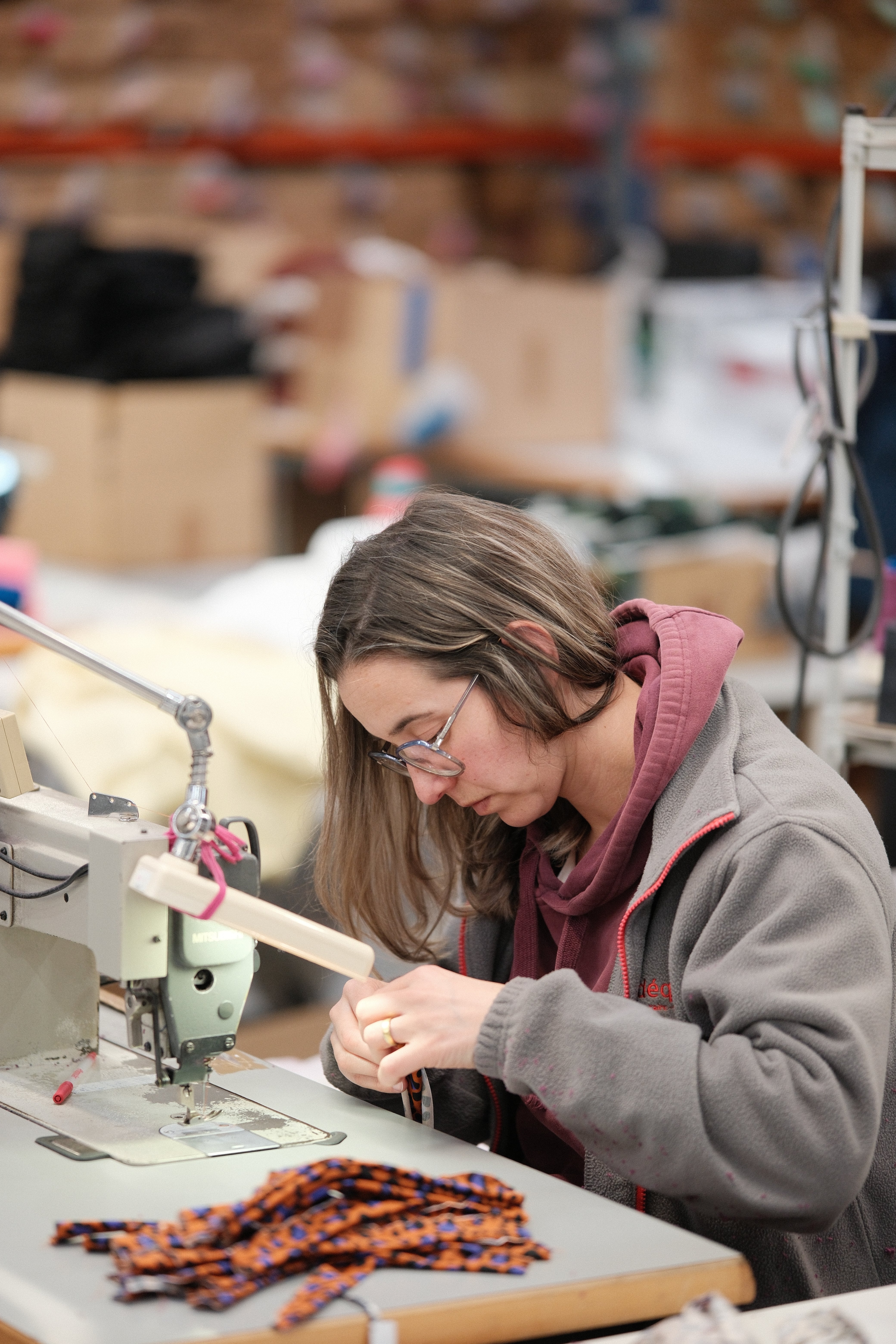 Organic cotton fiber is further processed in northern Portugal, where it is spun into yarn or the yarn is already spun when it reaches Portugal. Basic yarns are usually spun in Turkey and specialty yarns such as custom and specialty blends are spun in Portugal. Dyed and printed fabric is then transported to our factory for storage, cutting and sewing. Production waste is recycled. Recycling is handled by Black Moda Portugal.